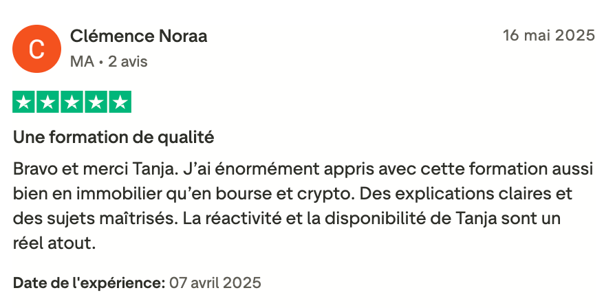 Loueuse meublé professionnelle et investisseuse depuis 2019, j'ai à mon actif une dizaine de lots immobiliers ainsi qu'un patrimoine financier me permettant aujourd'hui de jouir d'une sécurité financière à toute épreuve. Je possède la certification AMF et je suis diplômée en tant que conseillère en investissement financier indépendante. Je suis passionnée par l'histoire et l'économie monétaire et, l'ambition qui m'anime depuis des années, c'est la liberté et l'autosuffisance. J'accompagne aujourd'hui des particuliers afin de les aider à assurer leur sécurité financière grâce à la construction d'un patrimoine financier et immobilier solide.