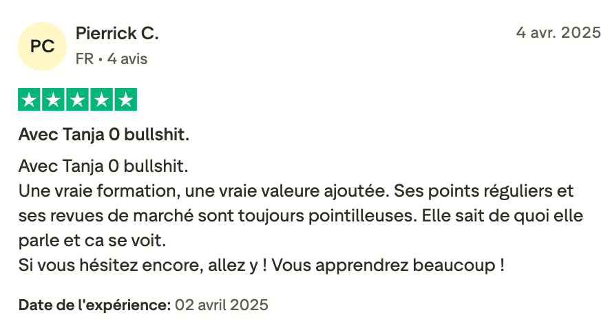 Oui, il y a plusieurs lives réalisés chaque mois, et notamment : une revue de marché, un atelier thématique, et un coaching de groupe.