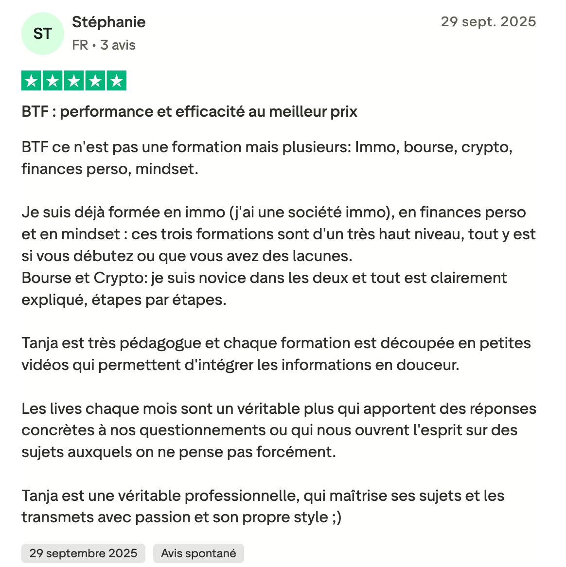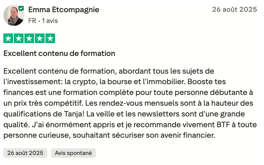 Booste Tes Finances est un programme d'accélération qui vous permettra de maîtriser les bases et les concept clefs de plusieurs types d'investissement, vous permettant de développer des stratégies vraiment rentables et adaptées à vos aspirations dans les domaines suivants : immobilier, bourse et cryptomonnaies.